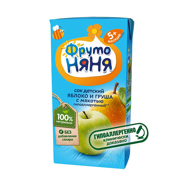 Сок яблочно-грушевый с мякотью «ФрутоНяня» станет чудесным дополнением для родителей, которые хотят разнообразить рацион малыша. В составе натуральные фркуты и ягоды, богатые витаминами, которые так важны ребенку в период активного роста. яркий и насыщенный вкус насытит ребенка и придаст ему сил для новых занимательных приключений. Объем 200мл.