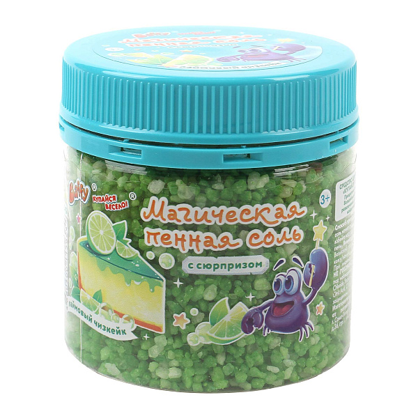 Пенная соль BAFFY с сюрпризом «Зелёный лайм чизкейк» — это яркое и ароматное средство для ванны, созданное специально для детей от 3 лет. Натуральные кристаллы соли растворяются в воде, образуя густую пену с освежающим цитрусовым ароматом лайма и нежными нотками чизкейка, создавая волшебную атмосферу купания.