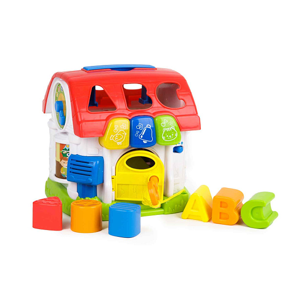 Музыкальный сортер Домик способствует развитию слухового, зрительного и тактильного восприятия, навыкам мелкой моторики и развивает логическое мышление малыша.