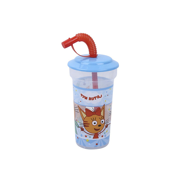 С помощью этого стильного детского стакана с трубочкой употребление напитка станет комфортным, долгожданным и приятным процессом для ребёнка любого возраста. Он имеет привлекательный дизайн по сюжету мультфильма «Три кота»: на нём изображены Коржик, Карамелька и Компот.