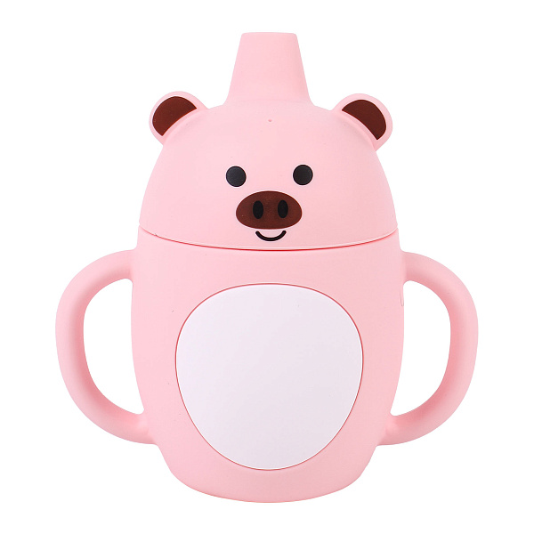 Стакан оснащен двумя прочными ручками, что облегчает держание для маленьких детей. Крышка выполнена в виде забавной хрюшки с выразительными глазами и носиком, что привлекает внимание и вызывает улыбку. Такая форма крышки способствует развитию мелкой моторики и делает процесс питья более увлекательным.