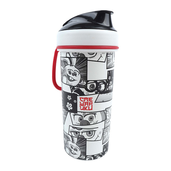 Особенностью стакана является мягкая петля-крючок ярко-красного цвета, которая облегчает переноску и позволяет удобно подвешивать стакан на различные крепления или держатели. Крышка оснащена удобным клапаном с откидным механизмом, который предотвращает проливание жидкости и обеспечивает легкий доступ к напитку. Такой дизайн способствует безопасному и комфортному использованию детьми.