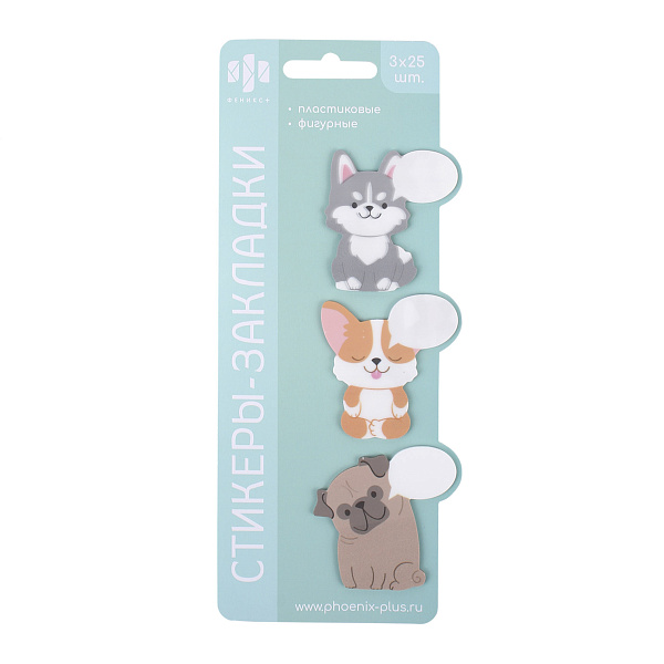 Стикеры-закладки Псы пластиковые фигурные 3х25шт