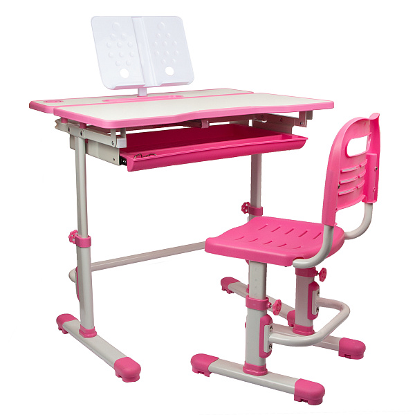 Комфортный центральный вырез столешницы, большое пространство для ног, наличие подставки для книг и выдвижного ящика создают чудесные условия для выполнения домашних заданий. Форма стула обеспечит правильную посадку, а наличие специальной перфорации необходимо для правильного воздухообмена.