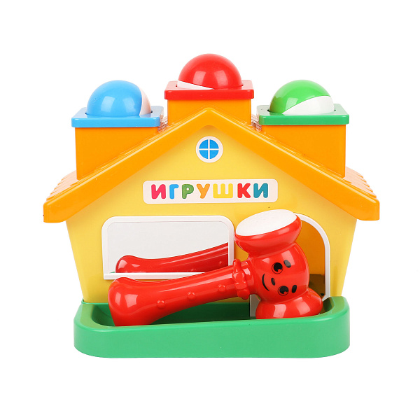 Яркая игрушка в полной мере отвечает потребностям годовалых малышей. В набор входит компактный дом, молоток и шарики. Ребенок с удовольствием будет загонять шары в домик при помощи ударного инструмента. Они будут выкатываться из дверного проема, радуя юного исследователя. Подобные развлечения улучшают координацию движений, стимулируют познавательную активность, речевые и моторные функции, аналитические способности. Прочный пластик устойчив к механическому воздействию, легко очищается от загрязнений. Изделие не выгорает на солнце, долгое время сохраняет привлекательность и потребительские свойства.