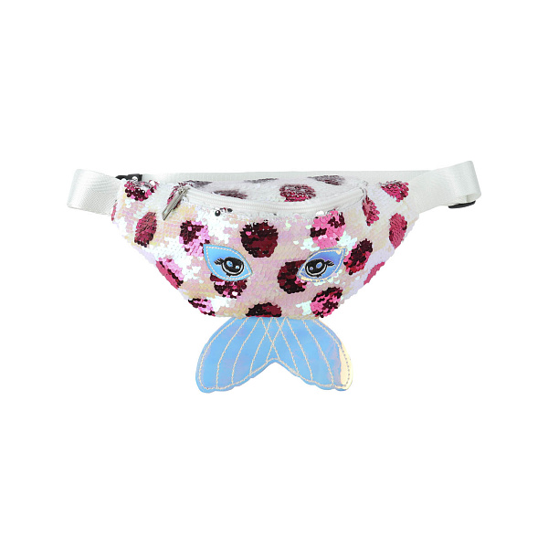 Поясная сумка-рыбка вызовет восторженные отзывы у маленькой модницы и ее подружек. Регулируемый ремень белого цвета позволяет подобрать оптимальную длину для комфортного ношения. Сумка щедро украшена пайетками, которые создают интересное цветовое сочетание. Пайетки приятны на ощупь, смогут развлечь обладательницу.