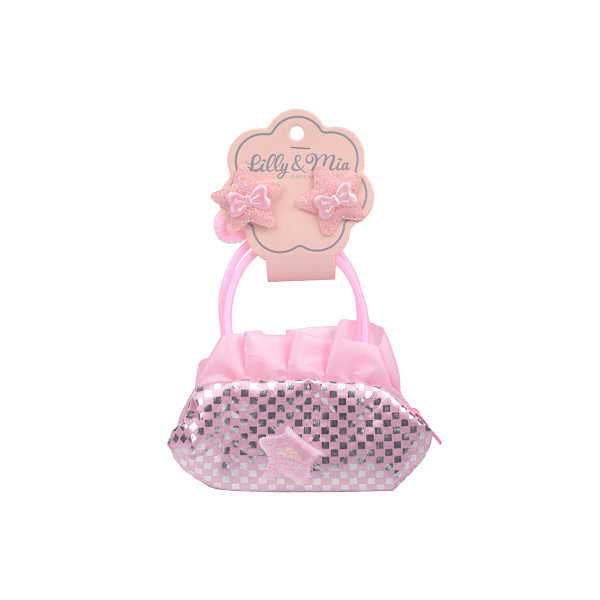 Детская розовая сумочка с розовыми рюшками, двумя ручками и принтом в форме розовой звезды и большого количества серебряных кругов понравится каждой малышке. Сумочка на молнии, с пластмассовой собачкой в качестве аксессуара. В наборе также есть два аксессуара для волос – розовые звезды с бантами. Резинки розового цвета, мягкие, легко будут держать даже самые непослушные и пушистые волосы. Внутри сумочки одно отделение, которое обито мягкой подложкой. В ней можно переносить игрушки, детскую косметику или расческу и резинки. Сумочка подойдет для детей любого возраста, может использоваться как для игры, так и для переноски различных вещей. Стильная сумочка порадует настоящую модницу, но и дополнит ее индивидуальный стиль.