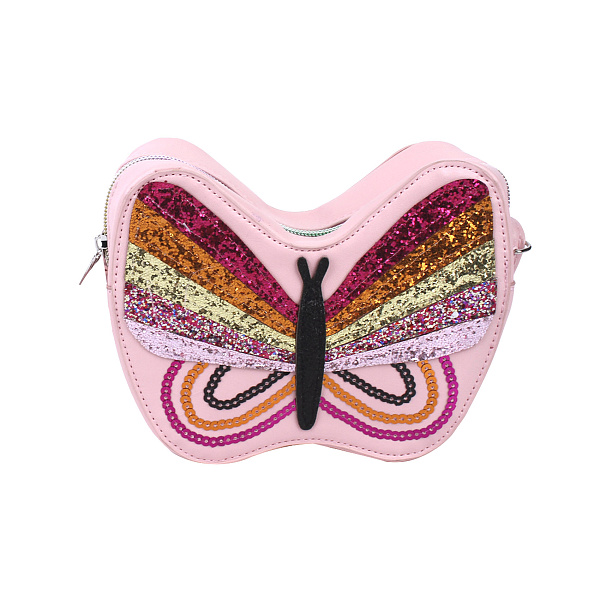 Порадовать маленькую модницу позволит оригинальная сумочка. Аксессуар выполнен в форме бабочки и украшен сверкающими пайетками. Он отлично дополнит образ маленькой модницы. Удобная застежка в виде молнии исключает потерю разных необходимых мелочей. Ремешок легко регулируется по длине. Такой аксессуар поднимает детям настроение, послужит стимулом для воображения, развивает чувство стиля и художественный вкус.