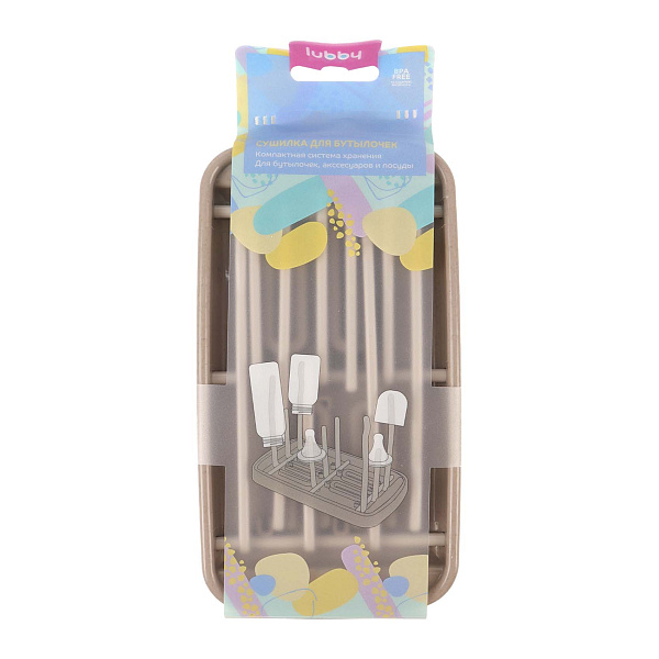 Сушилка для бутылочек Lubby — компактное и практичное решение для сушки детских бутылочек и аксессуаров. Изготовленная из прочного полипропилена, она обеспечивает надежность и длительный срок эксплуатации. Материал не содержит бисфенол А, что делает сушилку безопасной для использования в быту. Конструкция легко разбирается и подходит для мытья в посудомоечной машине, что упрощает уход за изделием.