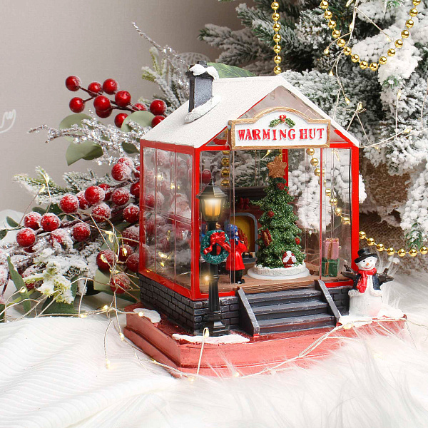 Сувенир новогодний Дом Деда Мороза с подсветкой и звуковыми эффектами 17,5см