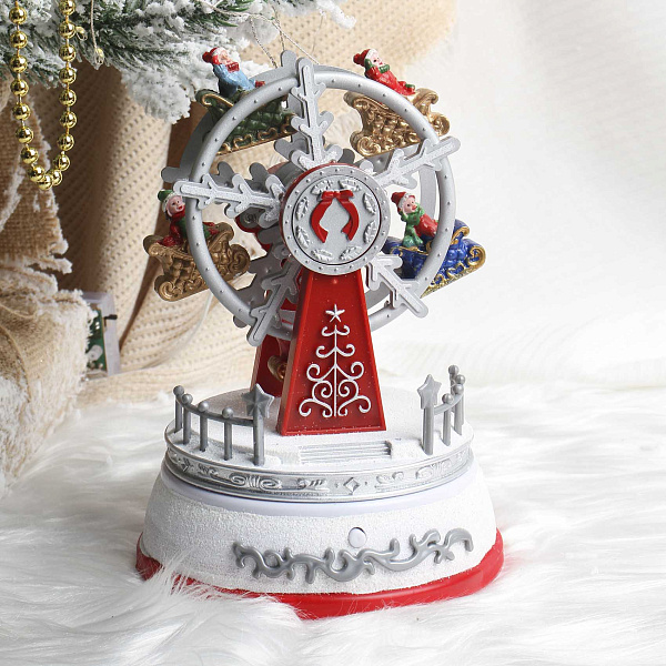 Карусель имеет подсветку и музыкальное сопровождение. Сувенир упакован в красную подарочную коробку.