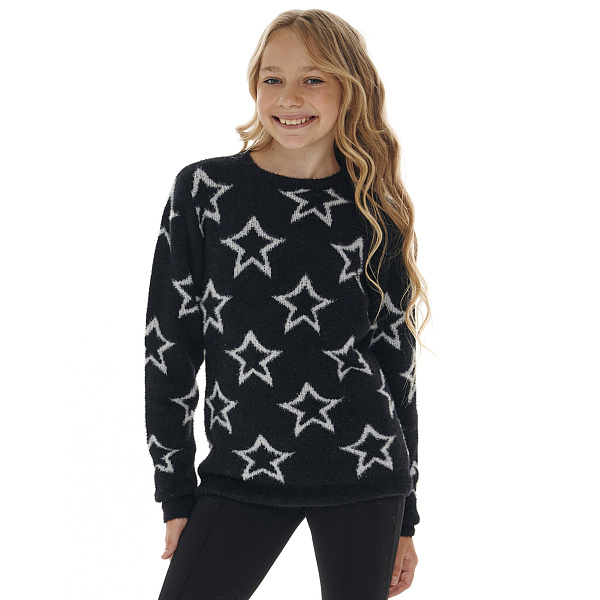 Свитер черного цвета с яркими звездами дополнит образ девочки. Вещь хорошо садится по фигуре, в меру облегает, не обтягивает. Ребенку гарантируется максимальное удобство, движения не сковываются. Изделие практичное, простое в уходе, сохраняет вид после множества стирок. Свитерок подойдет на прохладную погоду в осенний и весенний сезоны, зимой его надевают под куртку. Сочетается с любой одеждой ребенка, очень красивая и практичная вещь для детского гардероба.