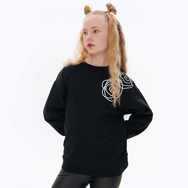 Свитшот Lanson Kids с минималистичными белыми розами черный