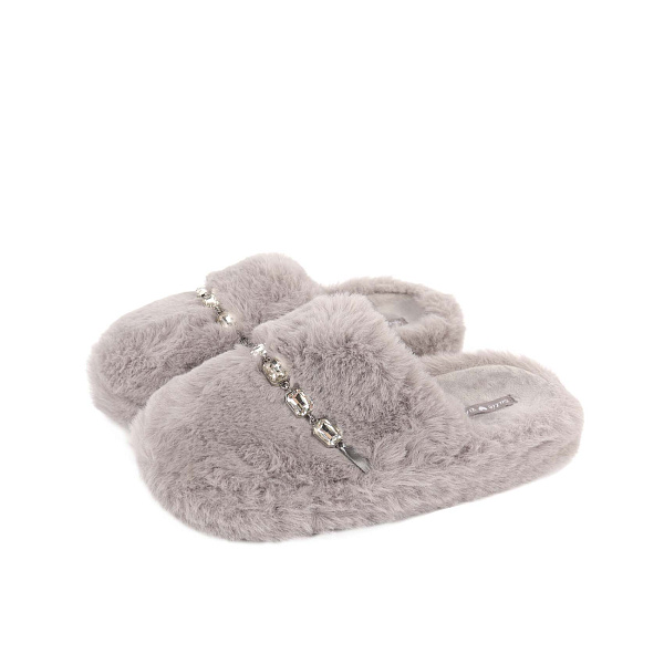 Тапочки Barbaris пушистые с цепочкой со стразами серые