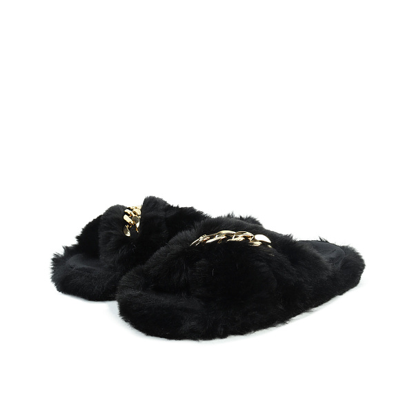 Для ребенка школьного возраста в холодное время года тапки-пантолеты станут подходящей домашней обувью. Тапочки изготовлены из текстильного материала, напоминающего натуральный мех, они пушистые, мягкие их приятно надеть на ноги. Тапки открытого типа, на ноге они удерживаются пушистыми ремешками, украшенными декоративной цепочкой. Перемычка пришита к основанию наискось, что помогает тапку лучше держаться на ноге. Стельки утепленные, подошва прямая, изготовлена из ТПР, материал не скользит по полу и не утяжеляет обувь. Тапки не только надежны и удобны, но и красивы внешне.