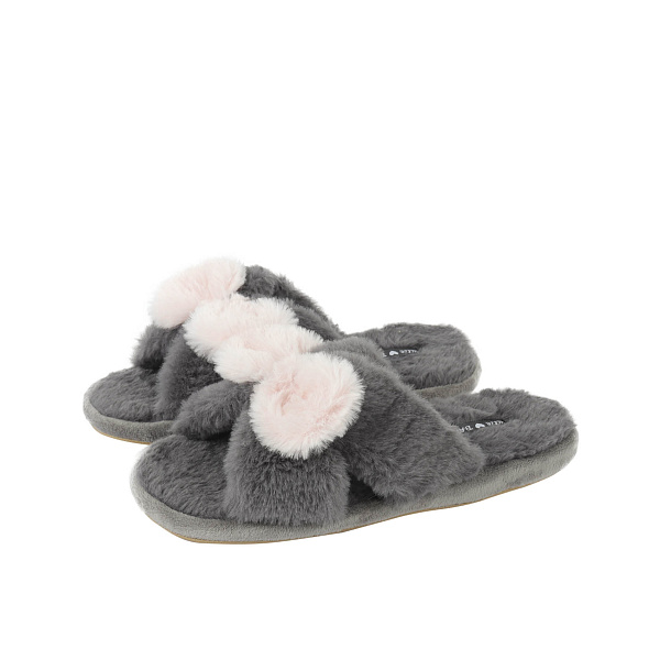 Пушистые пантолеты или просто домашние тапочки для девочек. Модель изготовлена из мягкого синтетического материала серого цвета с розовой вставкой в виде миниатюрного банта сверху. Мысок открытого типа. Подошва достаточно толстая и упругая. Во время движения создается необходимая амортизация. Сидят комфортно, при ходьбе не спадают. В них будет одинаково удобно в холодное и теплое время года. Тапочки выглядят стильно и современно. Одновременно похожи на взрослую аналогичную модель, но с сохранением детской легкости и непосредственности. При желании их можно носить не только дома, но и на улице, брать с собой на дачу или в гости.