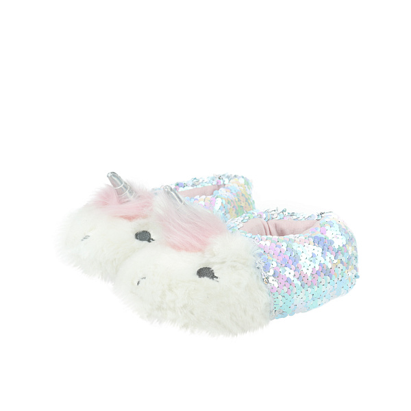 Домашние мягкие тапочки не оставят равнодушными ни одну модницу. Модель украшена сверкающими пайетками и милым единорожком, расположенным в передней части. Малышка с удовольствием будет надевать их и носить по дому. Изделия отличаются не только оригинальным внешним видом но и практичностью. Подкладка и стелька выполнены из прочных материалов в составе которых содержится 80% натурального хлопка. Благодаря этому ножки ребенка всегда будут теплыми и сухими.