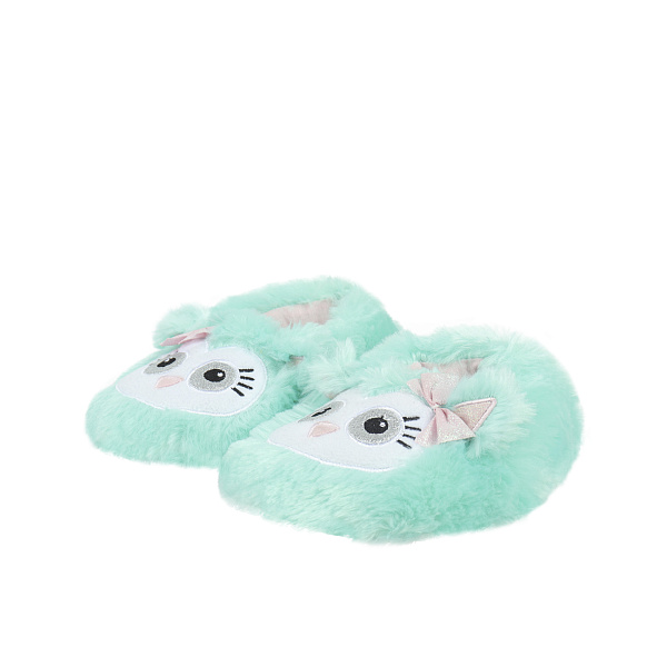 Домашние мягкие туфли пригодятся любой маленькой девочке. Модель бирюзового цвета имеет оригинальное украшение в виде забавной мордочки с милым розовым бантиком. Подобная обувь обеспечит комфорт и уют дома, поднимет настроение. Верх изделия выполнен из мягкого и прочного текстиля, в составе материала подкладки и стельки в большей степени присутствует хлопчатобумажная ткань (80%). Благодаря этому туфли не создают парникового эффекта, ножки ребенка будут всегда сухими. Подошва выполнена из текстиля.