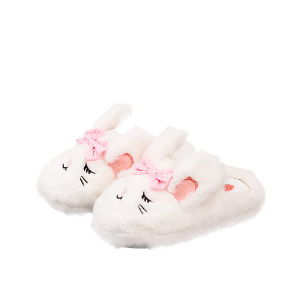 Нежные и пушистые тапки в виде кроликов понравятся девочкам дошкольного возраста. Тапочки имеют полимерную нескользящую поверхность, позволяющую безопасно ходить по покрытиям любого типа. Искусственный мех, из которого изготовлен верх тапок, легко стирается и комкается. Приподнятая к пятке подошва обеспечивает правильное положение стопы при ходьбе, а фактурный ободок вокруг пятки не позволяет ноге соскальзывать при движении. Внешне тапки похожи на милую пушистую игрушку, поэтому их вид кажется таким привлекательным для детей. А внутренняя часть тапочек украшена забавными морковками.