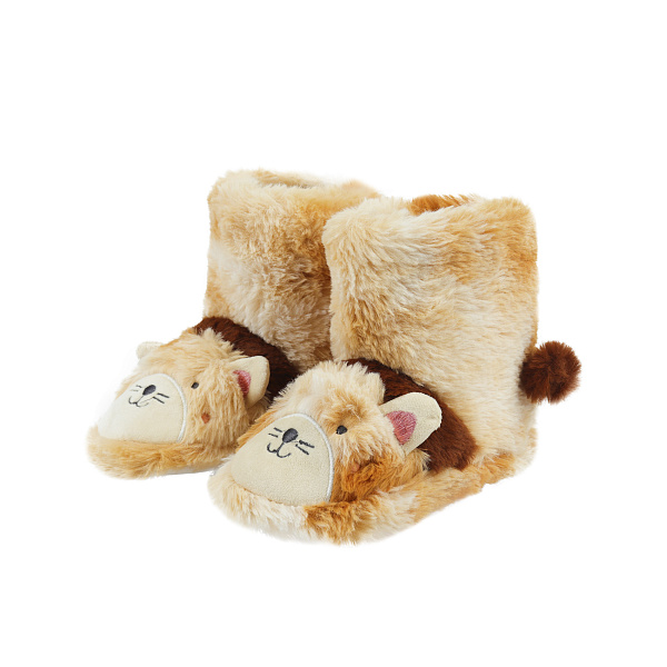Если в комнате прохладно зимой, то домашние утепленные сапожки будут необходимы для маленького исследователя. Домашние сапожки пошиты из мягких текстильных материалов. Высокие голенища фиксируют обувь на ноге и обеспечивают дополнительное утепление. Пушистая поверхность сапожков приятна на ощупь, дизайн выполнен и виде африканского льва. Носки выполнены в виде львиной мордочки с ушками, к заднику прикреплен пушистый львиный хвост. Подошва сапог выполнена из ТПР, материал не утяжеляет обувь и уберегает ребенка от скольжения. Рекомендовано для детей ясельного возраста.