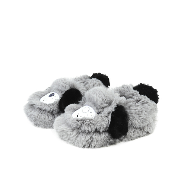 Маленькие дети любят тапки-игрушки, особенно в виде животных. Домашние туфли выполнены в виде забавных песиков. Носок каждого тапка украшен собачьей мордочкой, по бокам пришиты черные пушистые ушки, а к заднику пришит помпон-хвостик. Туфли закрытого типа, нога со всех сторон защищена утепленным текстильным мехом. Пушистая поверхность тапок приятна на ощупь. Задник хоть и мягкий, но надежно удерживает пятку ребенка. Поверхность подошвы изготовлена из ТПР, поэтому тапки не скользят по полу. Рекомендовано для детей ясельного возраста.