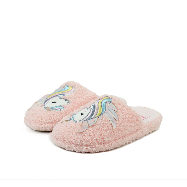 Как дома, так и в детском саду или на даче для регулярной носки мягкие и оригинальные тапочки-пантолеты. Розовые тапочки из флиса с пушистой и приятной на ощупь поверхностью согреют ноги, снимут усталость, не помешают активным играм ребенка. Подошва из ТПР прочная, но при этом гибкая. Тапочки имеют малый вес, они не утяжеляют ногу. На носках нанесен принт – изображение сказочного единорога. Стельки мягкие, пушистые. Носки глухие, боковые бортики и задник отсутствуют, поэтому тапочки ребенку легко надевать и снимать без помощи взрослых. Рекомендовано для детей дошкольного возраста.