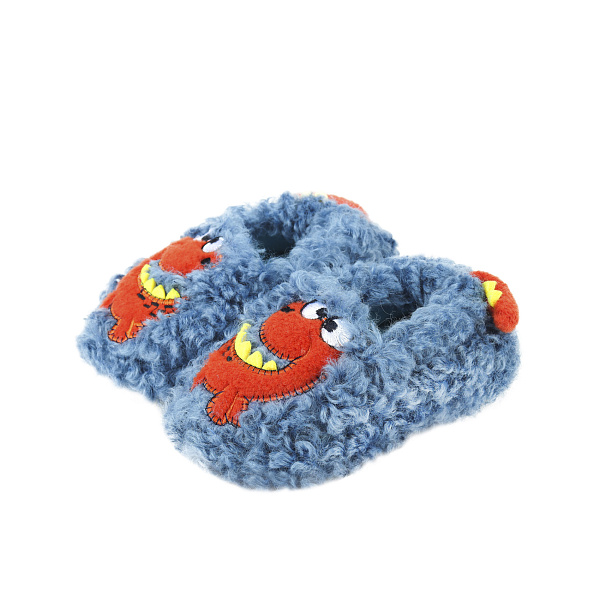 Малыши любят вещи с изображениями фантастических существ. Такие тапочки сохранят ноги ребенка в тепле. Обувь закрытого типа, верх тапок изготовлен из мягкого и приятного на ощупь текстиля. Носок глухой с расширенным мыском, что дарит комфорт в носке. Бортики и задник закрытые и не дают ноге съезжать вбок или назад. Подкладка и стелька хлопчатобумажные. Подошва выполнена из нескользящего ТПР, материал препятствует скольжению и не оставляет полос на полу. Тапочки синего цвета, на носках изображение веселого и смешного монстрика, к заднику пришит маленький красный хвостик. Рекомендовано для детей ясельного возраста.