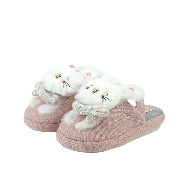 Красивые домашние тапочки хороши для использования как дома, так и в детском учреждении. Они приспособлены к ножке малыша, комфортны и внешне привлекательны. Пошиты пантолеты из мягкого ворсистого текстиля, подошва прямая и гибкая из ТПР, который обладает противоскользящими свойствами. Стелька утепленная, изготовлена их ХБ 80%. Носок закрытый. Для фиксирования ножки вместо задника предусмотрена специальная резинка. Цвет изделия – розовый, носки украшены фигурками белых кроликов. Мягкие тапочки согреют ногу с прохладное время нога. Рекомендовано для детей ясельного возраста.