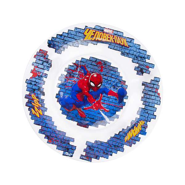 Вместительная тарелочка из стекла порадует каждого мальчика старше 3 лет эффектным оформлением. Человек Паук является самым популярным персонажем среди мальчишек во всем мире почти полвека. Ребенок будет с удовольствием пользоваться такой посудой, научится правильному поведению за столом и освоит правила этикета. Яркий рисунок нанесен особым методом. Краски не поблекнут после посудомоечной машины и не потускнеют со временем.
