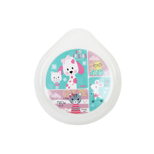 Плоская тарелка Idiland с забавными рисунками на дне понравится не только малышу, но и его маме. Тарелка имеет оптимальный для кормления ребенка размер и изготовлена из качественного полипропилена, не содержащего Бисфенол А. Такой материал обладает устойчивостью к царапинам и не бьется при случайном падении со стола. В плоскую тарелку накладывают мягкую пищу. Нанесенная на дно милая картинка заставит маму улыбнуться, а ребенка стимулирует доесть побыстрее всю пищу, чтобы полюбоваться на животных. Малышу тоже понравятся милые котики, собачка и мышка, собравшиеся погреться под теплым солнышком.