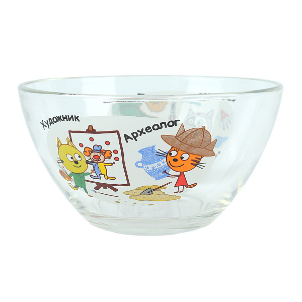 Прозрачный салатник из прочного стекла украшен изображениями героев мультсериала «Три кота» и обязательно понравится его поклонникам. Тарелка предназначена для подачи холодных блюд, таких как салаты, фрукты или десерты. Такая красочная посуда помогает сформировать здоровое отношение детей к питанию и развить самостоятельность.