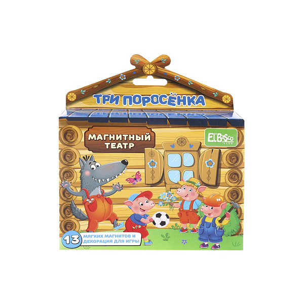 Магнитный театр «Три поросенка» включает 13 магнитных фигурок и листовку с текстом сказки. Фигурки изготовленные из картона, бумаги, изолона и магнитного винила. Этот набор помогает детям развивать воображение и творческие навыки, в то время как они рассказывают истории и придумывают новые сценарии.