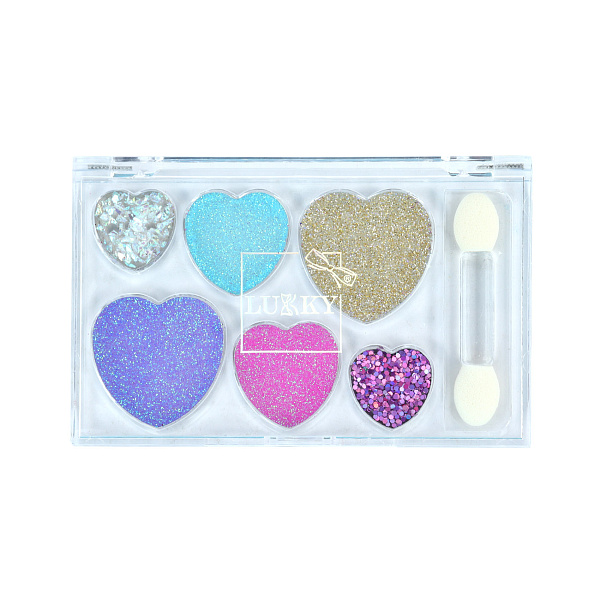 Тени для век LUKKY палетка сердечки с блестками и аппликатором