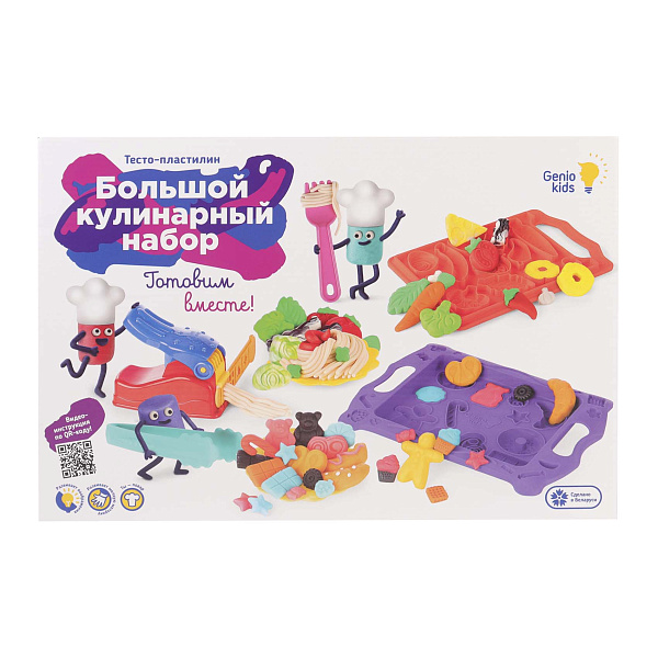 Тесто для лепки «Большой кулинарный набор» предлагает уникальную возможность окунуться в мир кулинарии с помощью безопасных и ярких материалов. В этот универсальный набор входят 9 баночек с разноцветным тестом, каждая весом по 50 грамм. Кулинарная доска и поднос с выемками-формочками помогут придать тесту различные формы и текстуры.