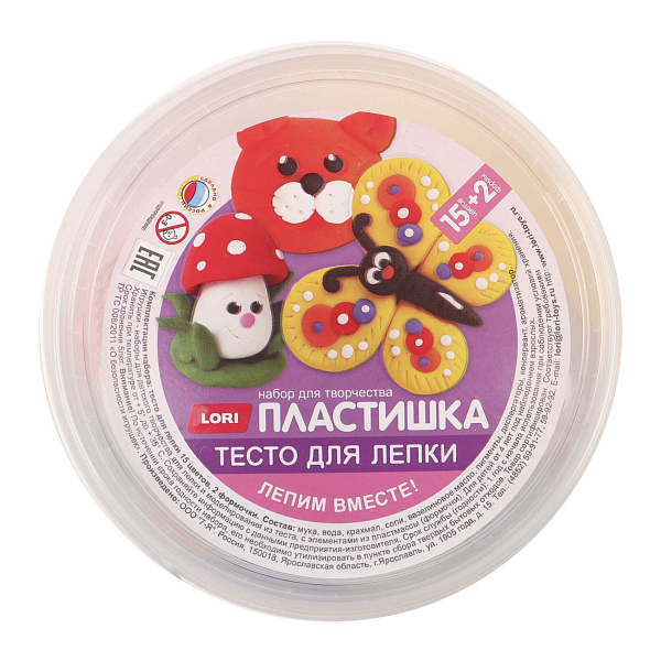 Тесто LORI для лепки Пластишка лепим вместе с формами 15цв 24гр