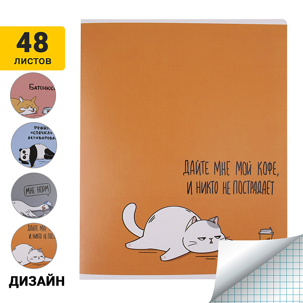 Тетрадь Ленивое настроение клетка 48л в ассортименте