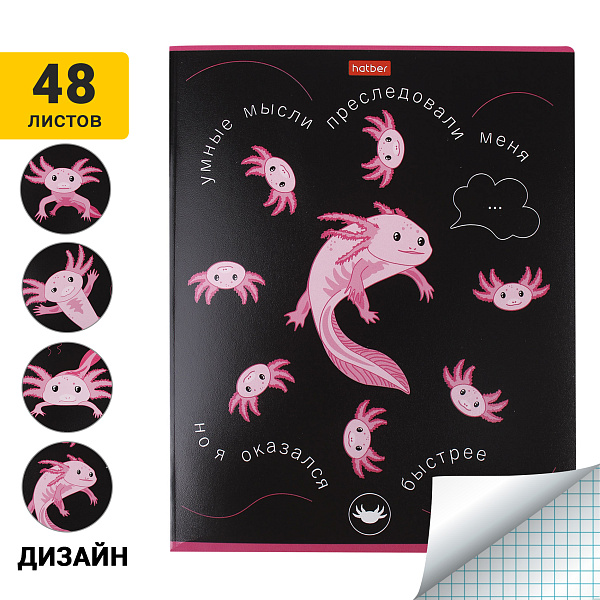 Тетрадь Малыш Аксолотль в клетку 48л в ассортименте