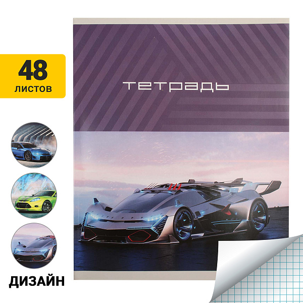 Дизайн с изображением спортивного автомобиля подчеркивает энергичность и современность. Клетка подходит для аккуратного ведения записей и черчения простых схем.