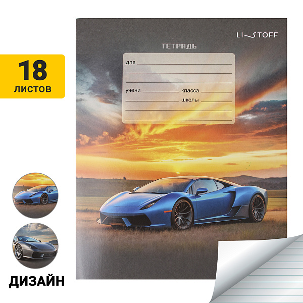 Тетрадь Победитель гонок в линейку 18л в ассортименте