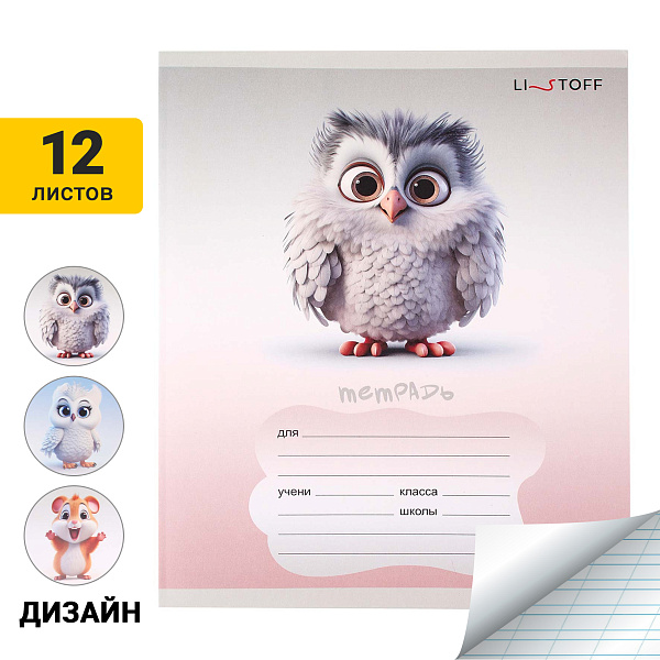 Тетрадь Пушистые друзья в косую линейку 12л в ассортименте