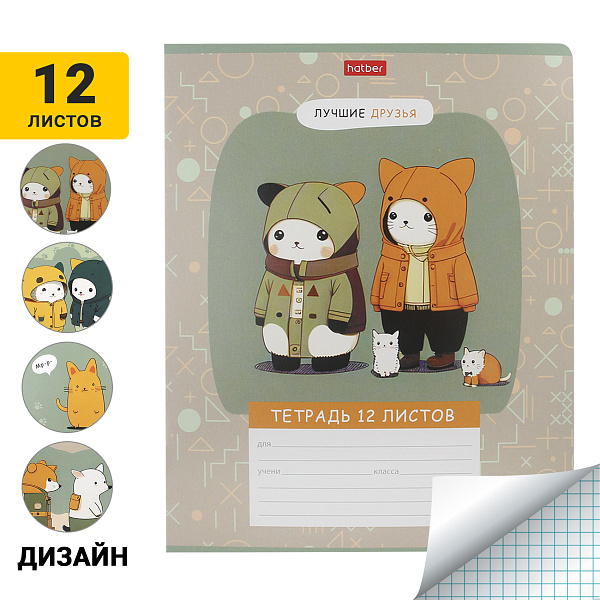 Тетрадь в клетку «Лучшие друзья на 12 листов станет надежным спутником в учебные будни. Она отлично подойдет для ведения записей, выполнения домашних заданий или творческих заметок.