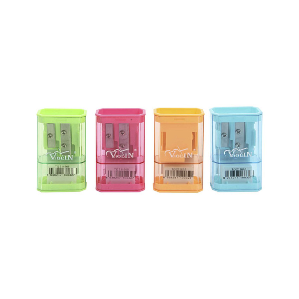 Разноцветная двойная точилка с ластиком станет палочкой выручалочкой для ребенка на уроках. Небольшое и удобное изделие с двумя отверстиями для заточки карандашей стандартного размера. Стоит отметить, что весь мусор собирается в специальный вместительный отсек. А значит, ребенку не придется переживать и срочно искать мусорное ведро. Легкая и компактная, она не занимает много места в пенале. Изготовлена из прозрачного пластика в разных цветах. Сбоку есть маленькое зеркало. Дополнительно к точилке прилагается ластик. Выполненный из эластичного материала, он быстро и без следа удаляет все лишнее с бумаги.