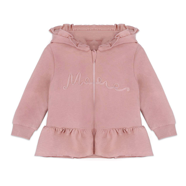 Толстовка Bebetto с капюшоном на молнии и рюшами по низу персиковая