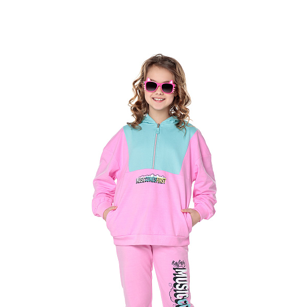 Эта яркая и многоцветная толстовка Lanson kids добавит яркости и красок в образ каждого ребенка. Контрастное сочетание розового и голубого привнесет сочности с летний образ девочки. В составе ткани использован хлопок, который хорошо проводит воздух и не дает телу перегреться. Но при этом ткань чудесно защищает кожу от ветра. Свободный крой и длинные рукава не сковывают движения в процессе носки. Вместительный капюшон можно плотно зафиксировать на голове благодаря молнии. Завершает образ большой сквозной карман на передней части, а также многоцветная надпись «Музыка приходит первой».