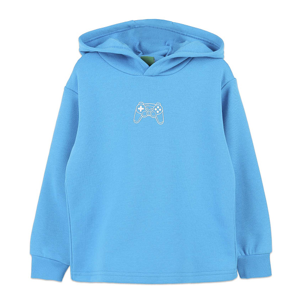Толстовка украшена минималистичным рисунком в виде джойстика, который порадует юных любителей видеоигр. Капюшон защитит голову от ветра, а манжеты на рукавах обеспечат дополнительное тепло.