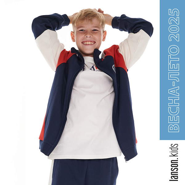 Толстовка Lanson Kids на молнии с карманами и цветными вставками синяя