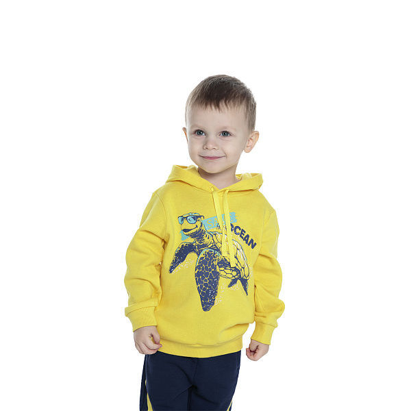 Яркая толстовка из 100% хлопка органично дополнит гардероб маленького мальчика ясельного возраста. Модный силуэт, насыщенный цвет, оригинальный рисунок выделяют данную модель из линейки других товаров. Изделие имеет глубокий капюшон, а также дополнено манжетами на рукавах и по нижнему краю. Свободный крой обеспечит ребенку свободу движений во время увлекательных игр. Материал не препятствует естественной циркуляции воздуха, не деформируется, не выгорает, чудесно сохраняет форму. Одежда легко отстирывается в автоматическом и ручном режиме. Продукция безопасна для детского здоровья. Из гигиенических соображений обязательна предварительная стирка.