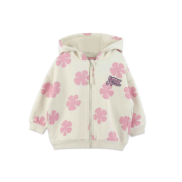 Удобная толстовка на молнии удачно дополнит сезонный гардероб любой девочки. Модель создана с учетом модных тенденций и потребностей ребенка, имеет капюшон и защитный клапан на застежке. Свободный крой гарантирует комфорт во время прогулок. Трикотажные манжеты и резинка по нижнему краю бережно прилегают к телу. Для оформления применяется узор из абстрактных цветов и спокойная цветовая гамма.
