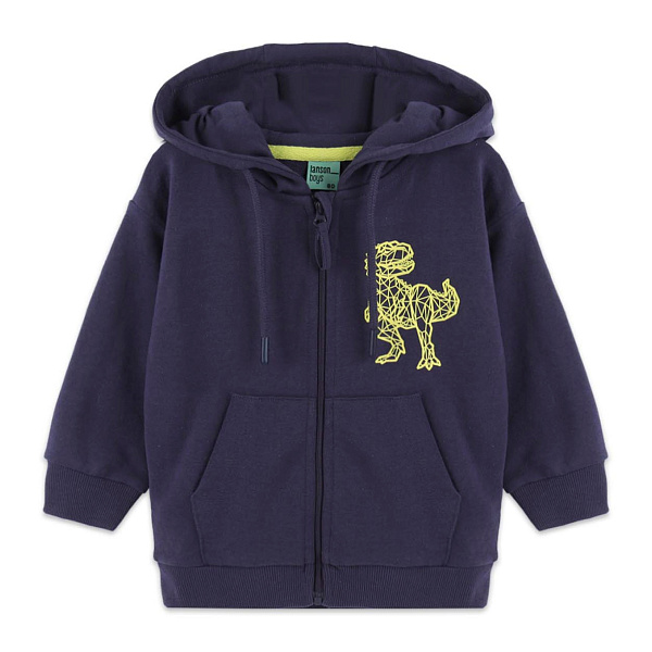 Цвет толстовки – темно-синий. На левой стороне груди имеется декоративный принт – желтый динозавр.