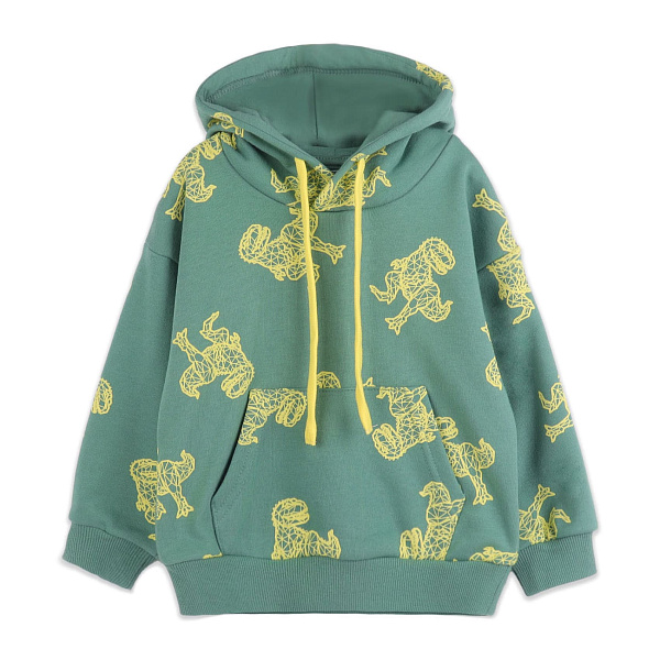 Модная толстовка с капюшоном станет базовым элементом сезонного гардероба маленького мальчика. Модель имеет свободный крой, комфортно сидит на фигуре любого типа. Трикотажные манжеты и резинка по нижнему краю обеспечат плотное прилегание, не окажут излишнего давления на кожу ребенка. Юный модник по достоинству оценит карман «кенгуру» на животе и стильный дизайн изделия.